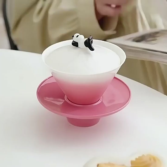 Ombre Panda Tea Cup Set: Ceramic Coffee Mug, Panda Lover Gift